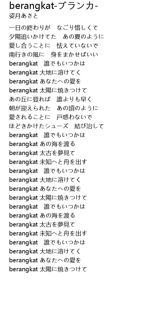 | [01:53.23] | berangkat あなたへの愛を |