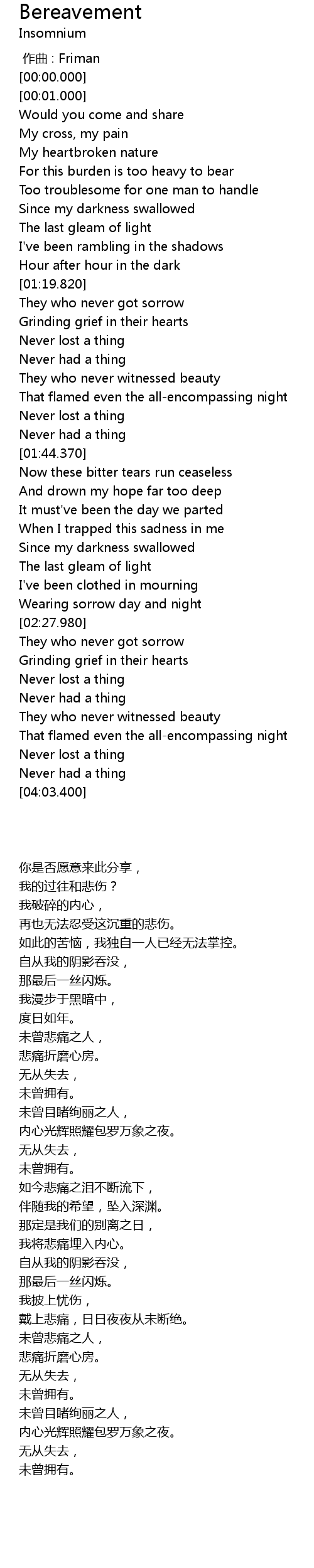 | Song | Bereavement |