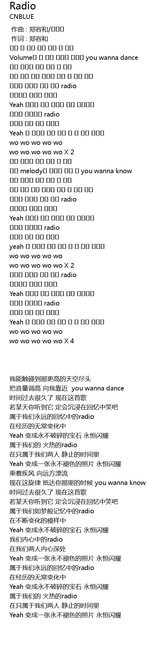 | [00:01.00] | 作词 : 郑容和 |