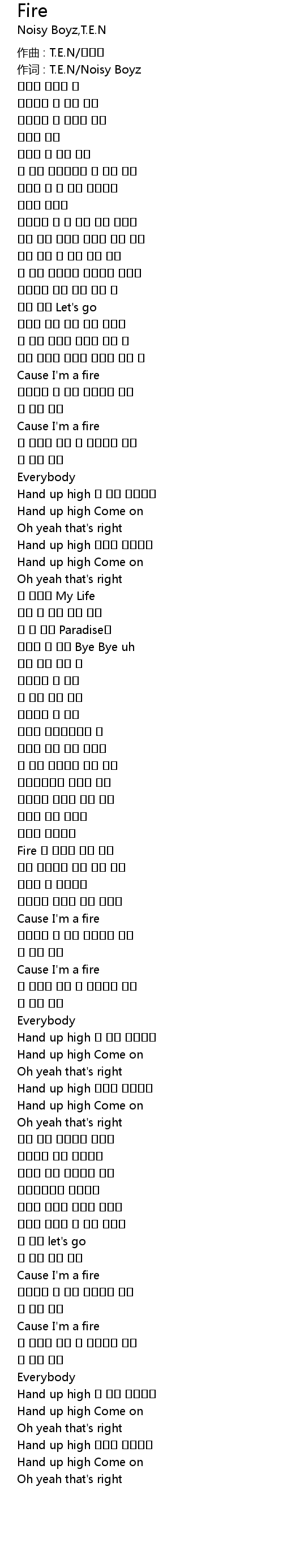 | 作词 : T.E.N/Noisy Boyz | |