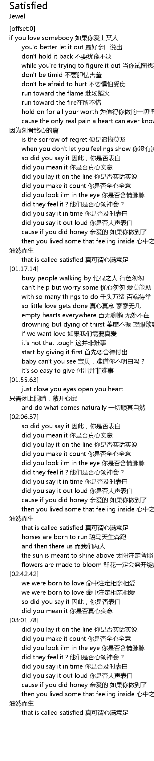 | [03:29.70] | that is called satisfied zhēn kě wèi xīn mǎn yì zú |