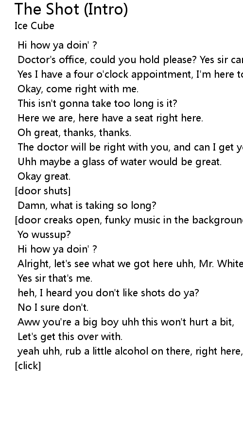[doctor Ice Cube:] heh, I heard you don't like shots do ya?