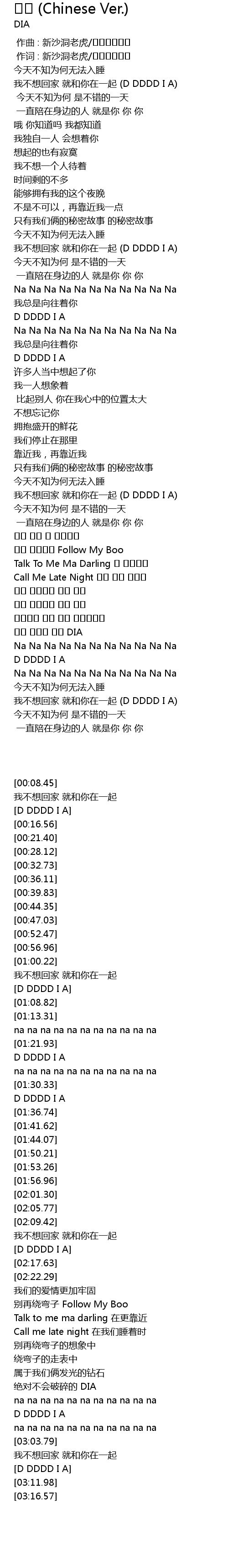 | [02:12.75] | 我不想回家 就和你在一起 (D DDDD I A) |