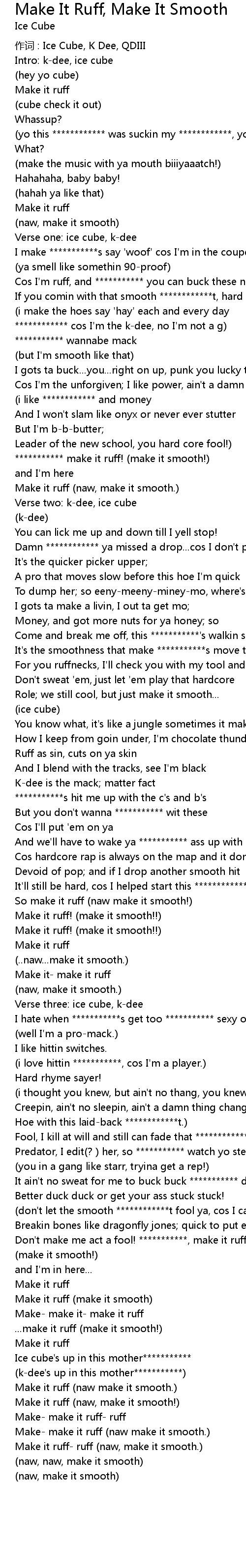 | (don't let the smooth ************t fool ya, cos I can get it on; cos I be | |