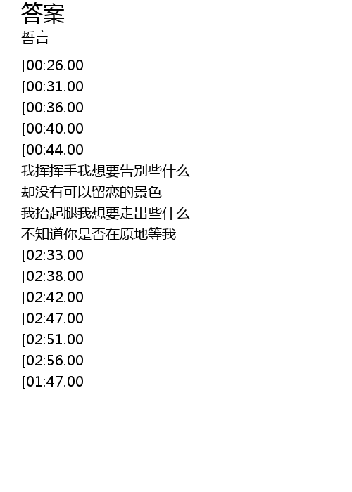 | [03:28.00][02:56.00][01:39.00] | 哦答案在风中飘着 |