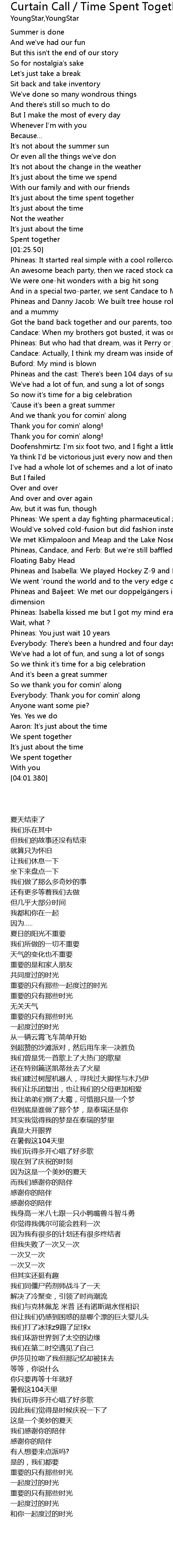 | [02:06.460] | Phineas and the cast: There' s been 104 days of summer vacation |