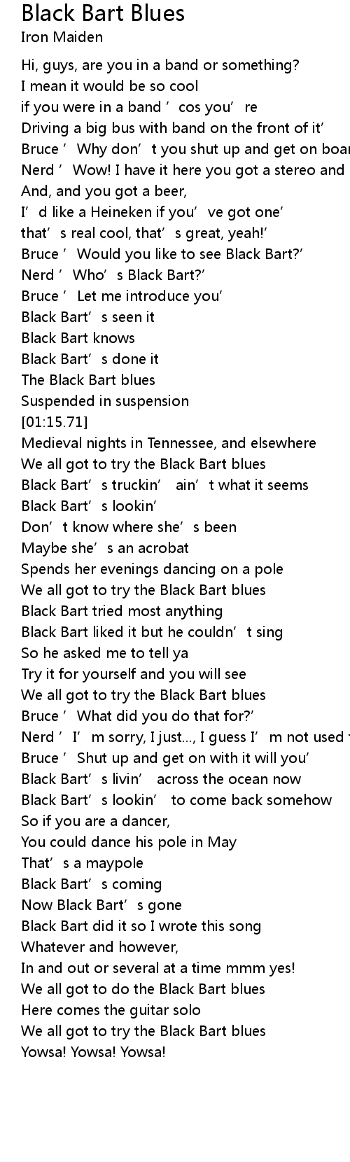 | [01:40.61] | We all got to try the Black Bart blues |