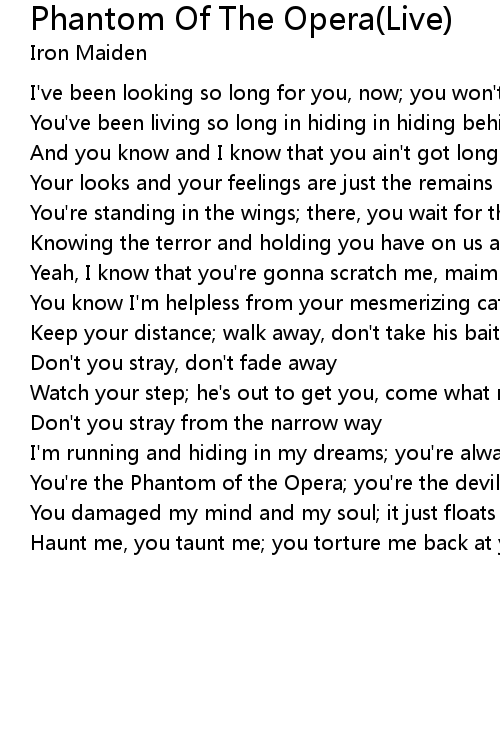 You're the Phantom of the Opera; you're the devil; you're just out to scare |