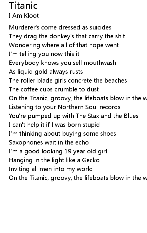 On the Titanic, groovy, the lifeboats blow in the wind. |