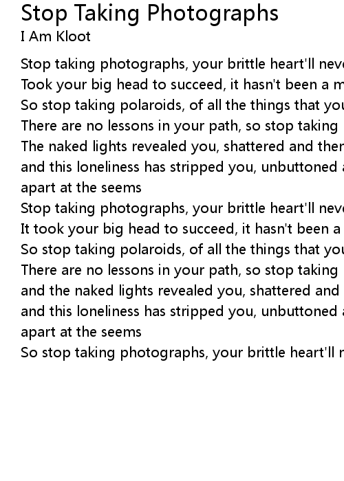 So stop taking photographs, your brittle heart'll never bleed |