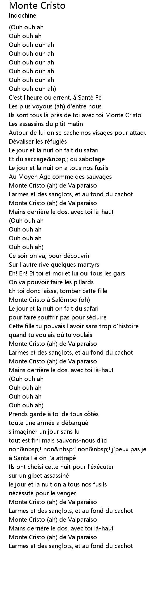 | Ils sont tous là prè s de toi avec toi Monte Cristo | |