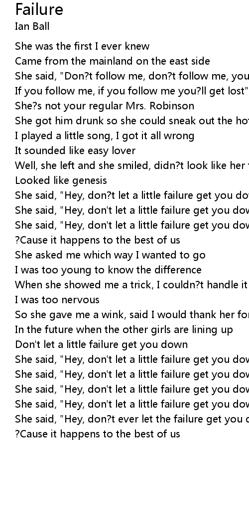 She said, "Hey, don?t let a little failure get you down" |