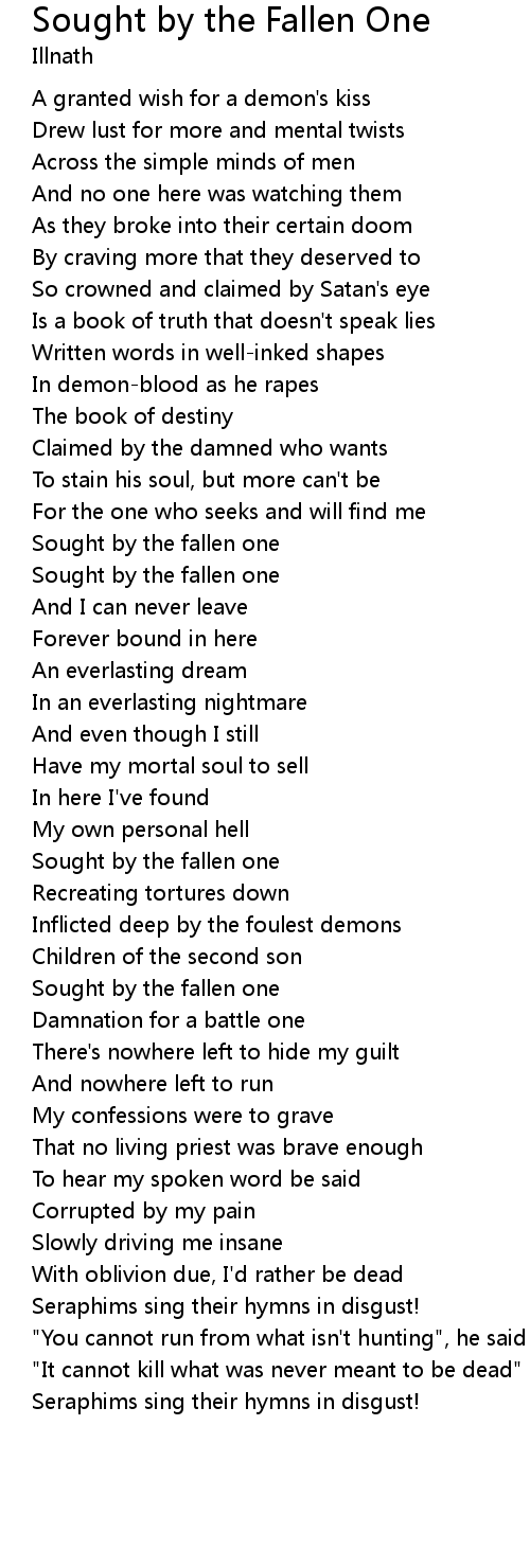 Sought by the fallen one |