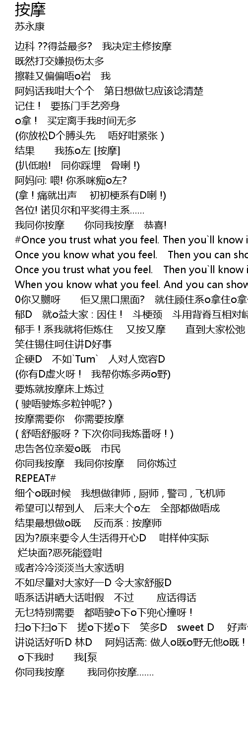 | 你同我按摩 我同你按摩 同你炼过 | |