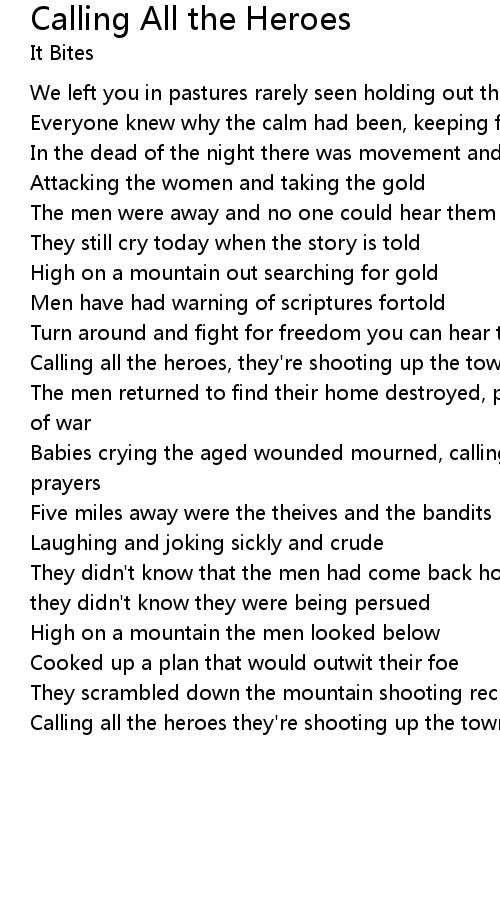 Calling all the heroes, they're shooting up the town boys |