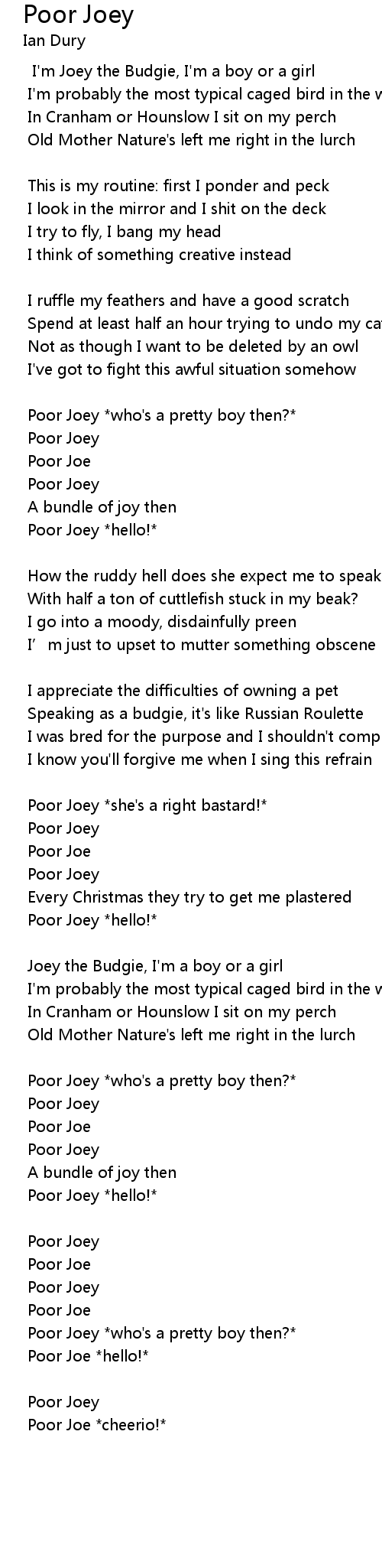 | I' m Joey the Budgie, I' m a boy or a girl | |