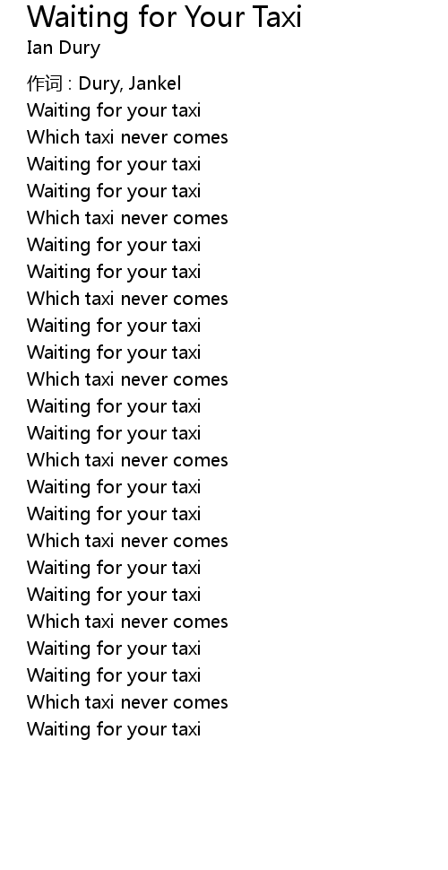 Waiting for Your Taxi Lyrics