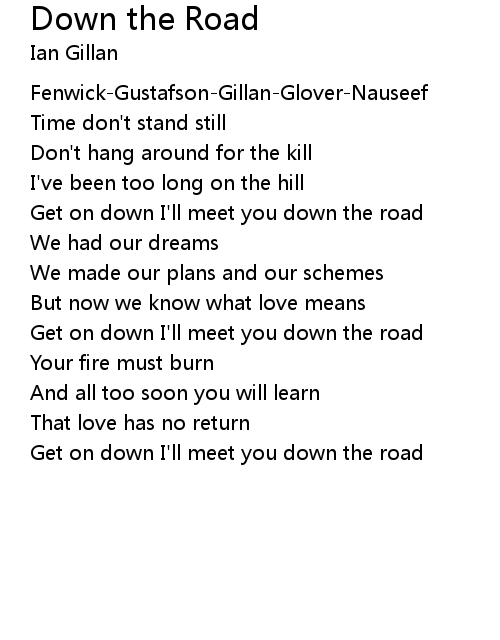 | Get on down I'll meet you down the road |