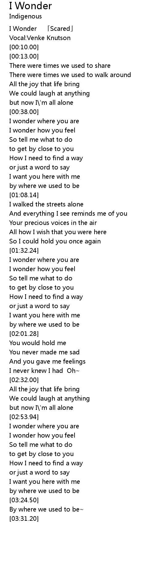 | [00:02.00] | I Wonder Scared |