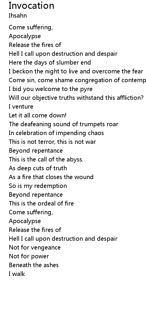 Hell I call upon destruction and despair |
