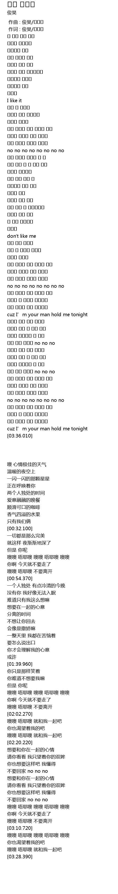 | [00:01.00] | 作词 : 俊昊/심은지 |
