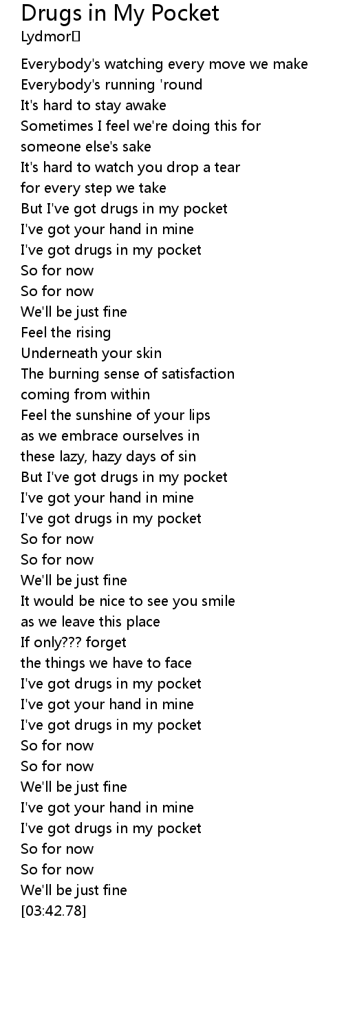| [00:51.34] | I've got drugs in my pocket |