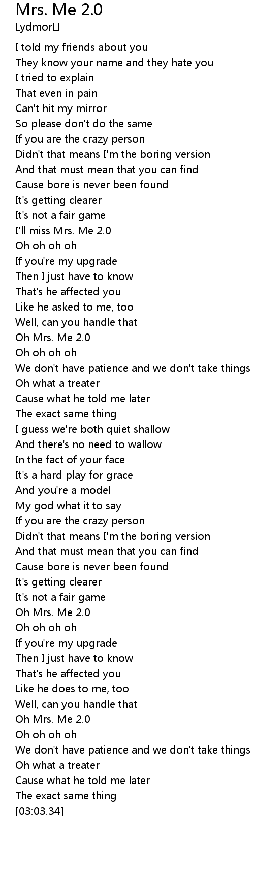 | [02:32.26] | Oh Mrs. Me 2.0 |