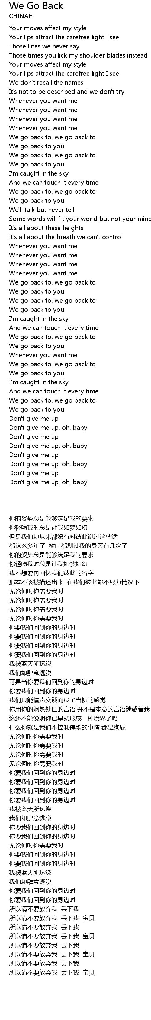Don't give me up, oh, baby |