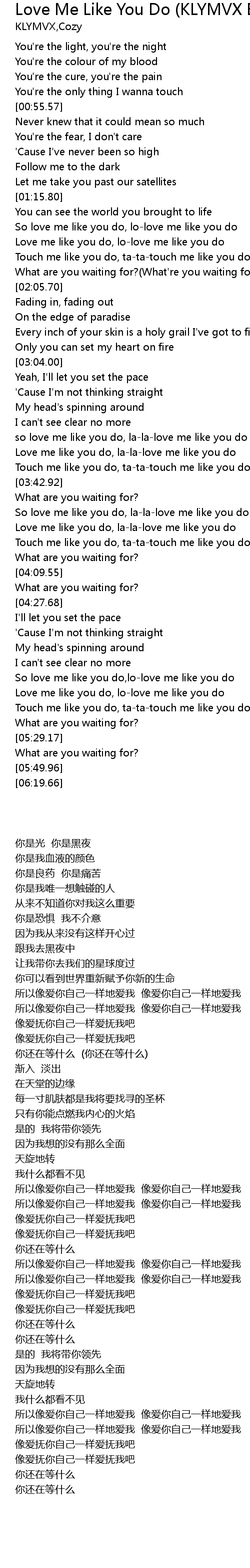 | [05:07.41] | So love me like you do,lo-love me like you do |