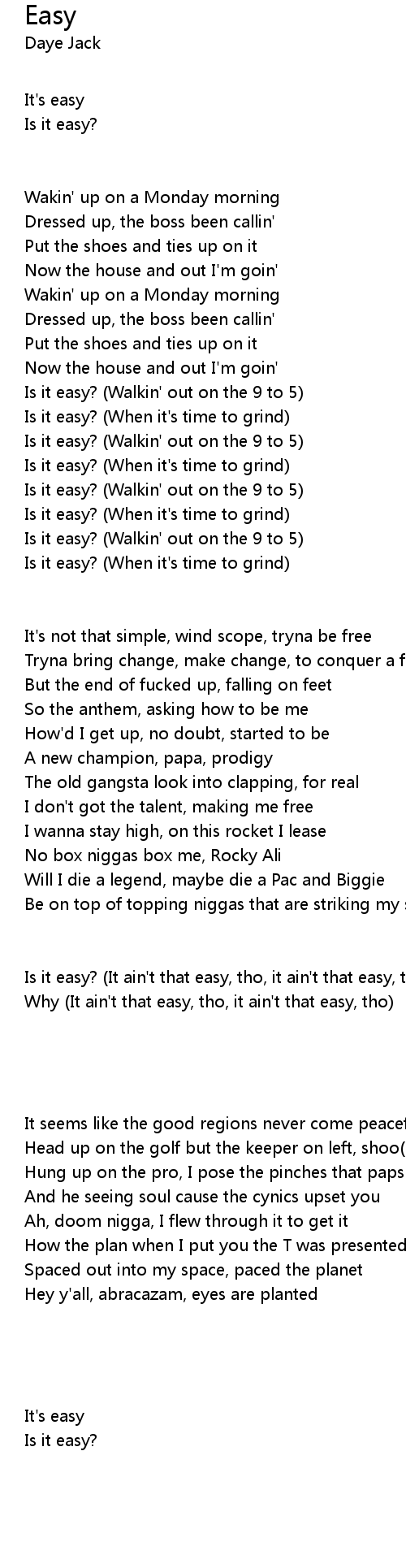 | Is it easy? (It ain't that easy, tho, it ain't that easy, tho) | |