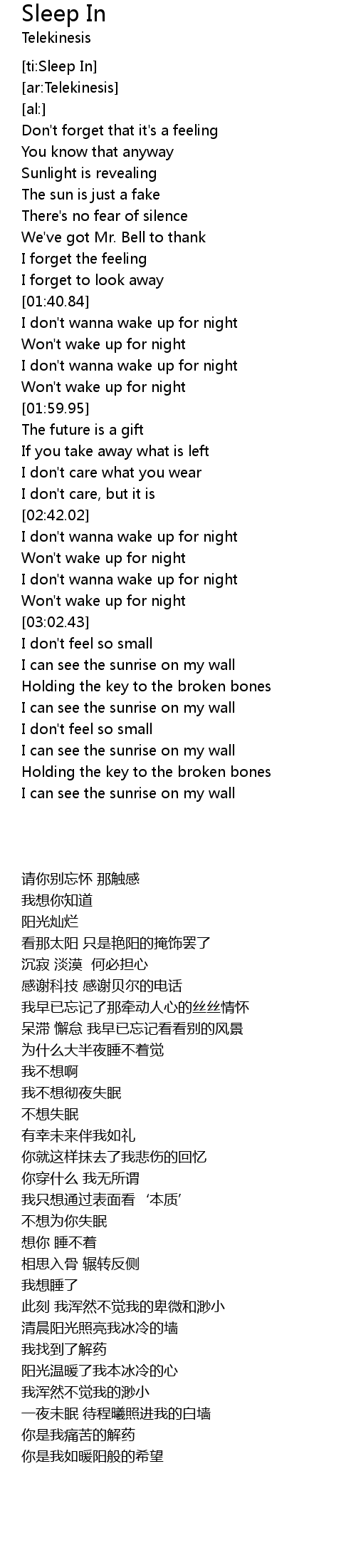 [ti:Sleep In] |