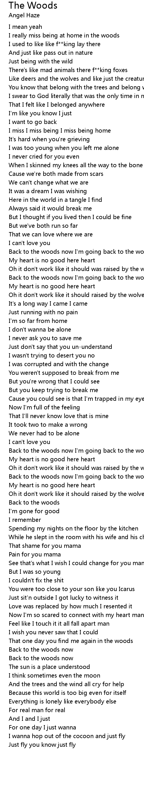 [01:26.93] Back to the woods now I'm going back to the woods back