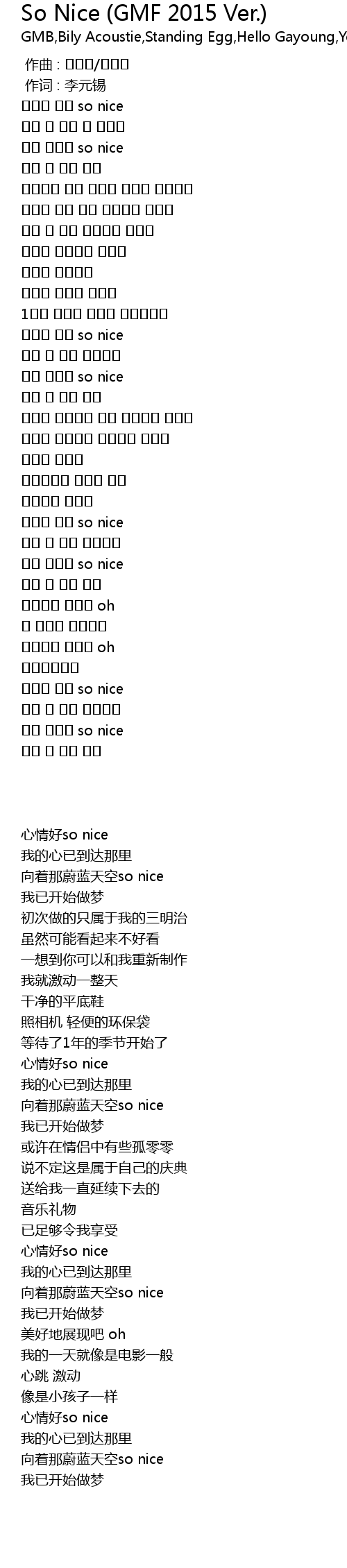 So Nice (GMF 2015 Ver.) Lyrics