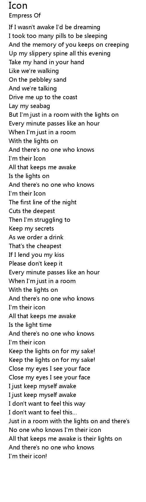 | [00:44.09] | But I'm just in a room with the lights on |
