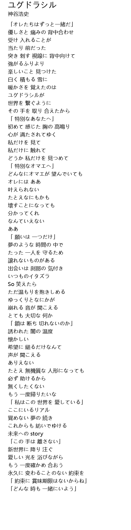 | [00:16.72] | 「オレたちはずっと一緒だ」 |