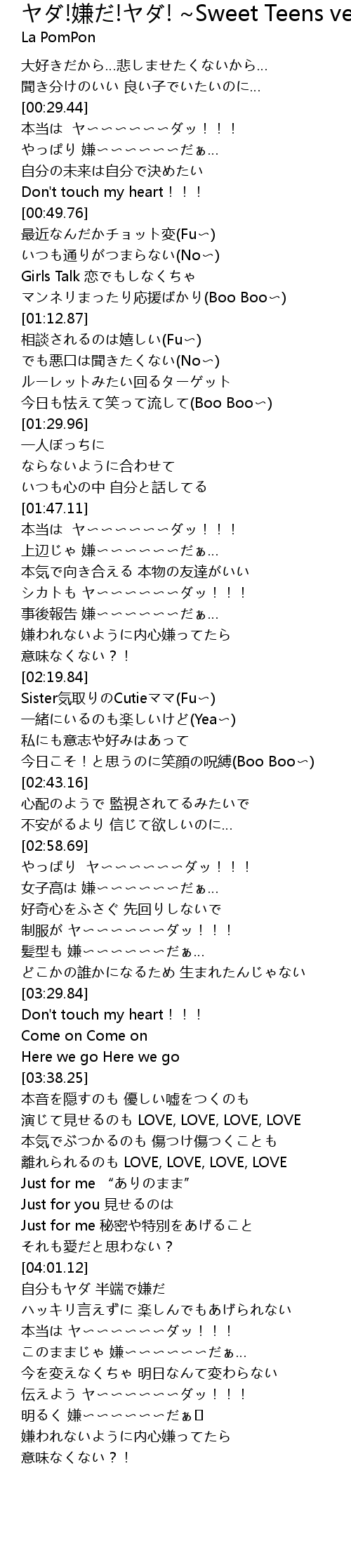 | [03:00.10] | やっぱり ヤ〜〜〜〜〜〜ダッ!!! |