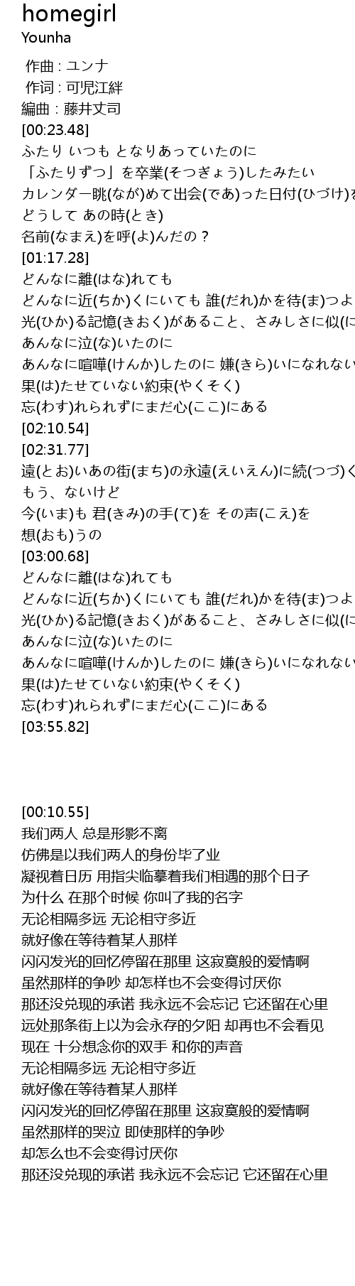| [00:51.09] | カレンダー眺(なが)めて出会(であ)った日付(ひづけ)を指先(ゆびさき)でなぞった |