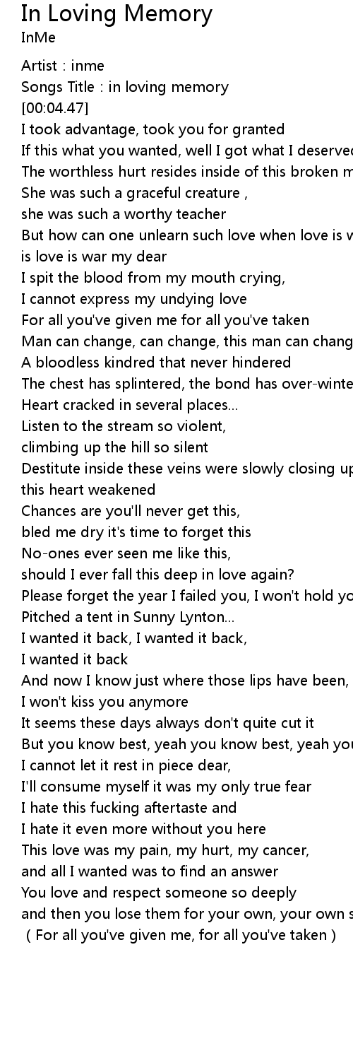 | [00:02.66] | Songs Title:in loving memory |