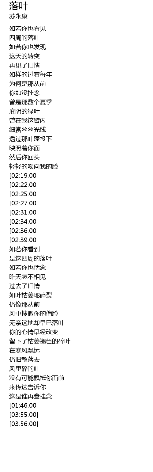 | [03:26.00][02:39.00][01:41.00] | 风里碎的叶 |