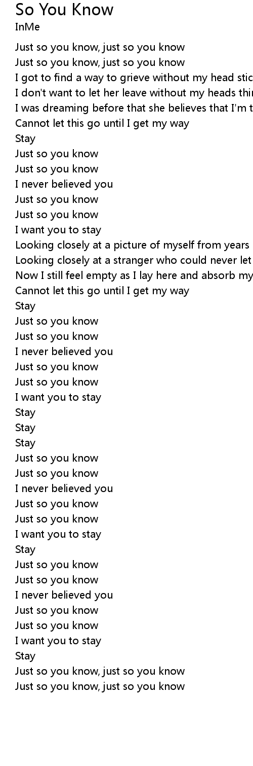 So You Know Lyrics