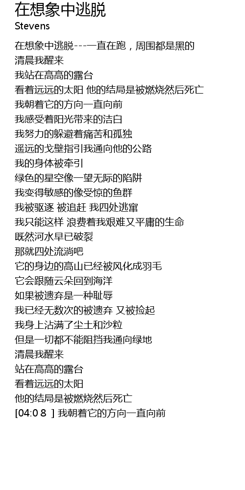 | [00:26] | 在想象中逃脱---一直在跑,周围都是黑的 |