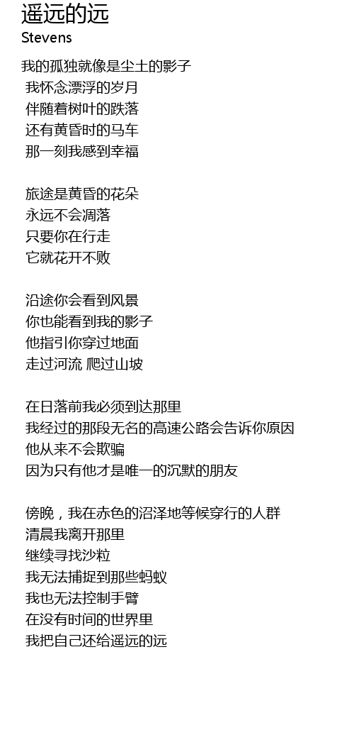 | wǒ bǎ zì jǐ huán gěi yáo yuǎn de yuǎn |