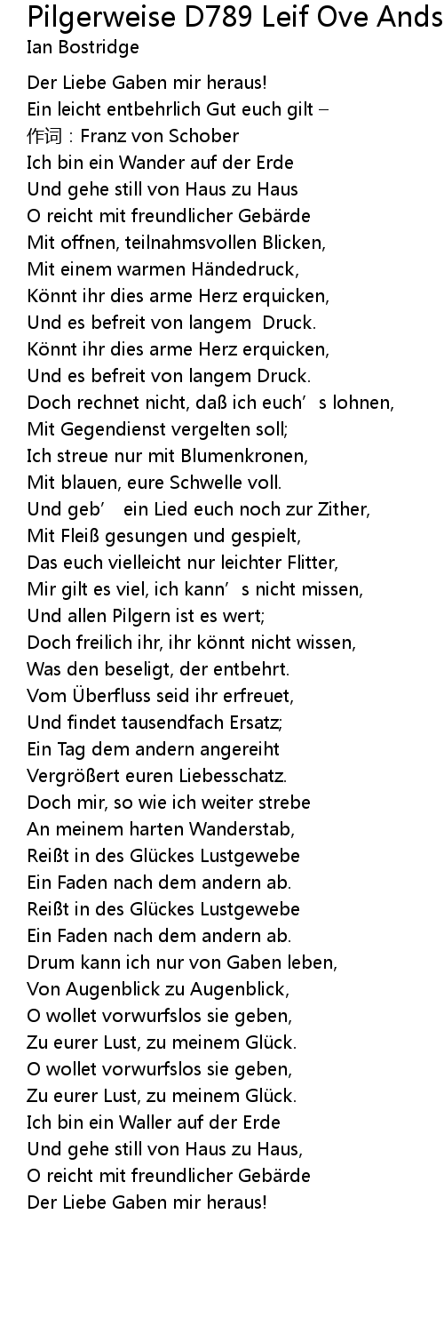 | [00:15.02] | Ich bin ein Wander auf der Erde |