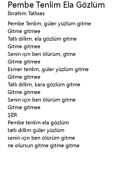| Pembe tenlim ela gözlüm | |