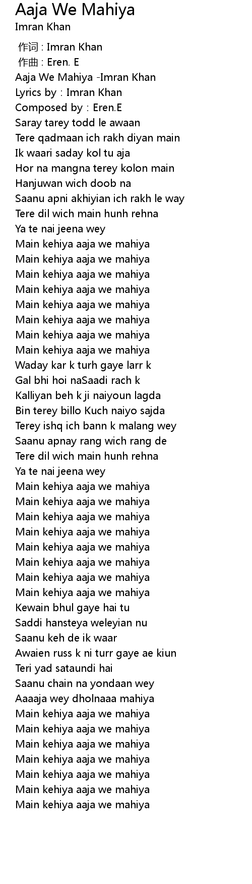 | [00:00.266] | Aaja We Mahiya Imran Khan |