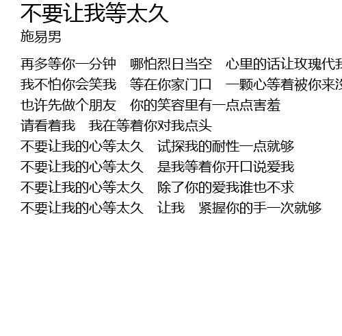 | 不要让我的心等太久 除了你的爱我谁也不求 | |