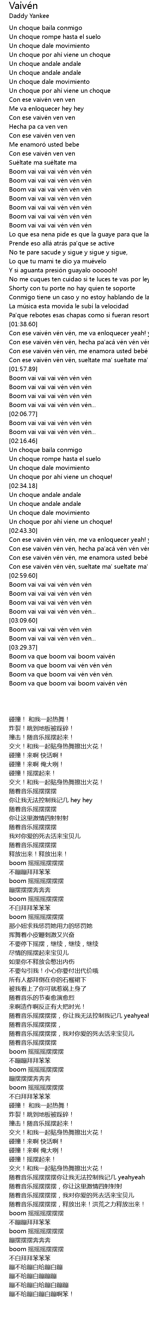 | [03:35.78] | Boom va que boom vai boom vaivén vén |