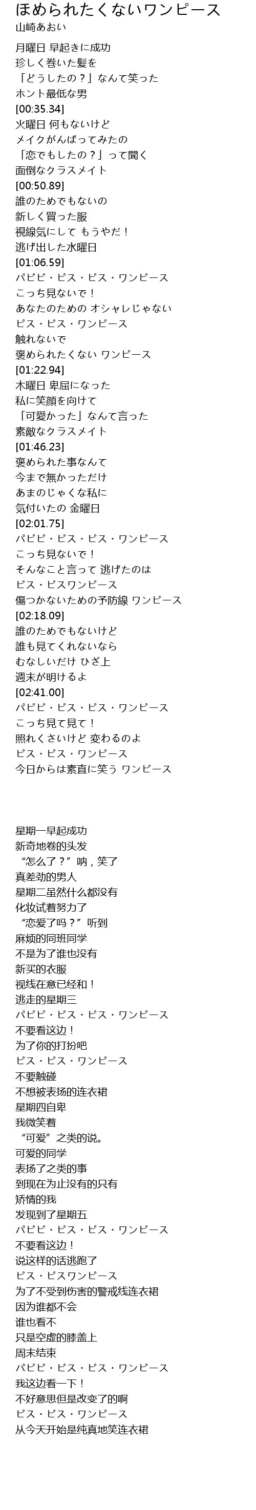 | [01:18.94] | 褒められたくない ワンピース |