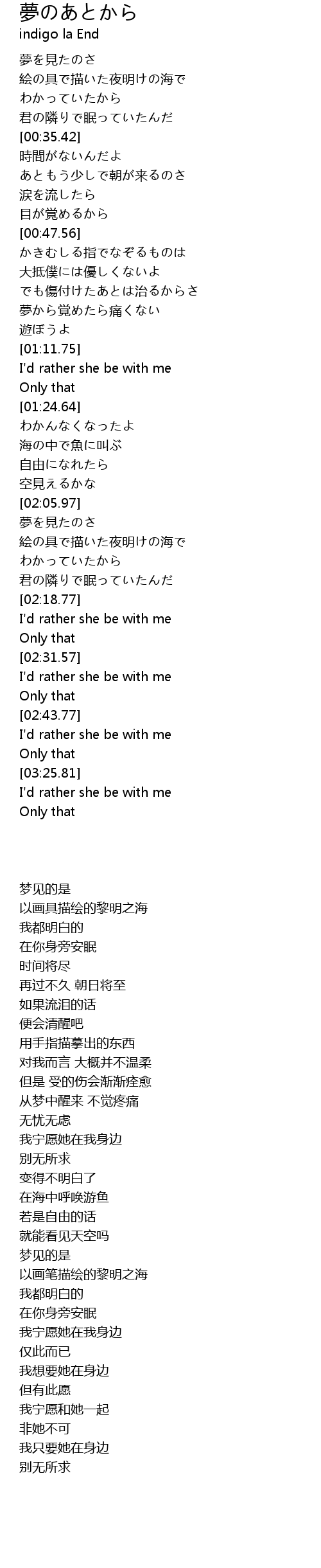 | [02:19.55] | I' d rather she be with me |