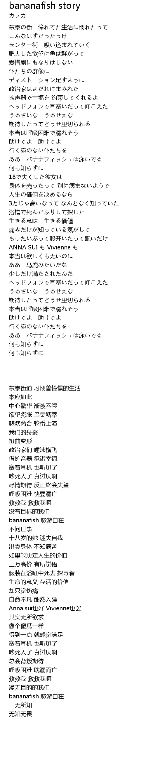 | [01:34.35] | ああ バナナフィッシュは泳いでる |